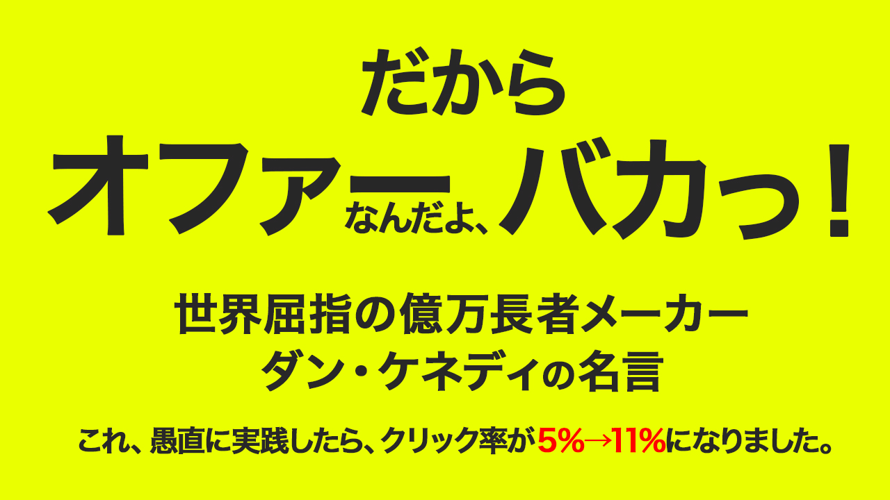 私自身、オファーのテストをして、大幅なクリック率改善を経験しました。
